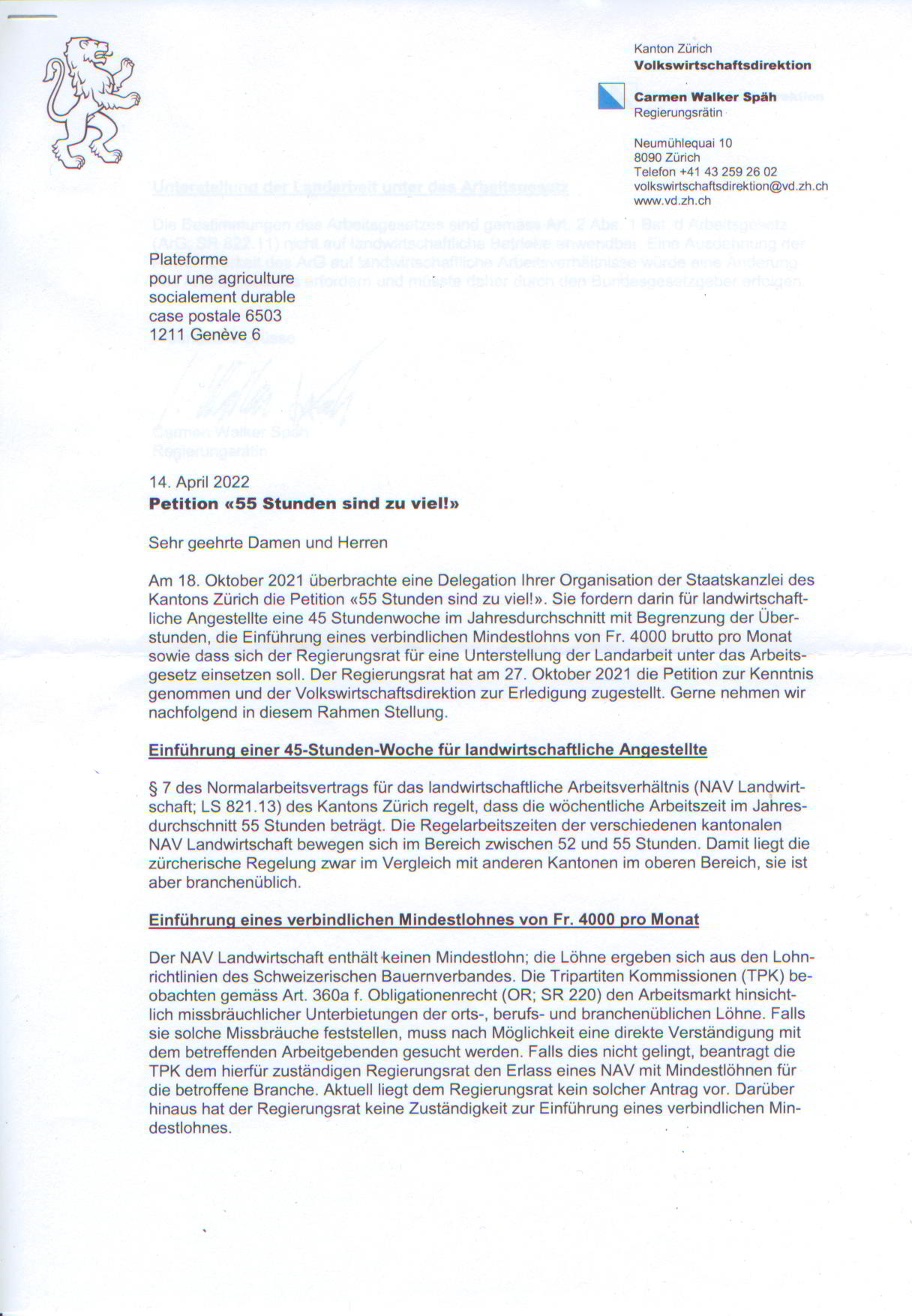 Antwort Zurich